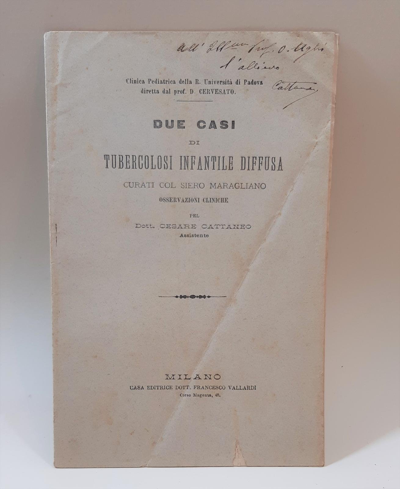 Cesare Cattaneo Due casi di tubercolosi infantile diffusa curati con la siero Maragliano osservazioni cliniche Vallardi 1896 estratto