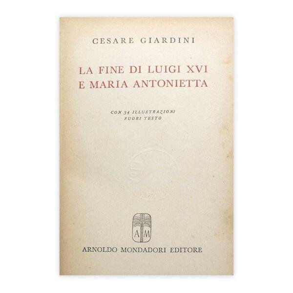 Autore: Cesare Giardini Titolo: La fine di Luigi XVI e Maria Antonietta Sottotitolo: con 34 Illustrazioni fuori testo Edizione: Arnoldo Mondadori Editore 1944 Dimensioni: 14 x 20 cm c.a. Pagine: 523 Copertina: Cartonato Condizioni: Buone come da foto
