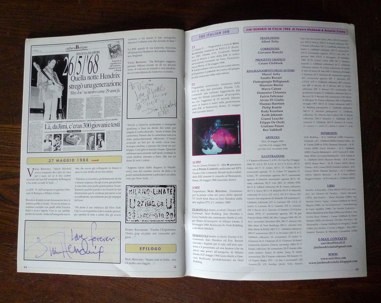 JIMI HENDRIX IN ITALIA 1968di Cesare Glebbek & Roberto Crema.UniVibes & Jimi-Hendrix-Italia, 2010,prima edizione: maggio 2010,brossura, rilegatura con punto metallico,29,5x21 cm., pp.55,illustrazioni fotografiche in nero e a colori,peso: g.400cod.9974CONDIZIONI DELL'OPUSCOLO: ottime
