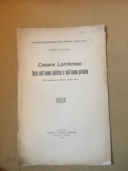 Cesare Lombroso. Note sull'uomo politico e sull'uomo privato. (Pel Congresso di Colonia, ottobre 1911)