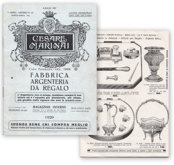 Cesare Marinai. Fabbrica Argenteria da regalo. V anno, listino n. 13, marzo - aprile 1929.