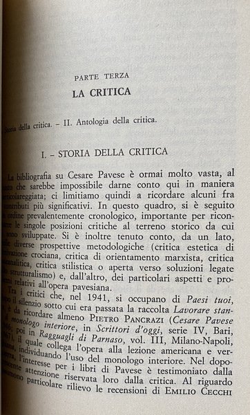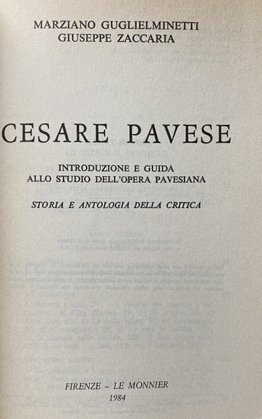 CESARE PAVESE. INTRODUZIONE E GUIDA ALLO STUDIO DELL'OPERA PAVESIANA. STORIA E ANTOLOGIA DELLA CRITICA