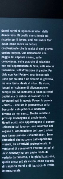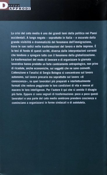 L’attenzione e l’analisi di Sergio Bologna si concentrano sul lavoro autonomo, sul lavoro precario ma soprattutto sul lavoro «di conoscenza», su quei lavoratori più preparati e intellettualmente formati che vedono peggiorate le loro condizioni di vita e messe al macero le loro intelligenze. Per l’autore è qui che si annida il disagio più forte. Eppure ci sono segnali di trasformazione: poco a poco questi lavoratori e una parte del ceto medio sembrano prendere coscienza e cominciano a organizzarsi in forme sindacali e di autotutela.