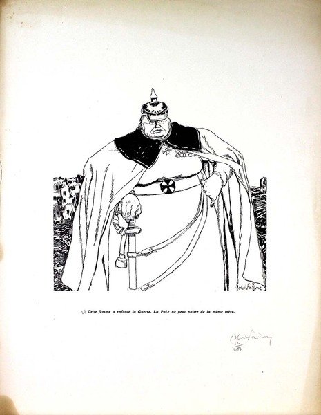 Abel Jules Faivre (Lione 1867 - Nizza 1945) Litografia originale firmata a mano dall'artista.Dimensioni: 56 x 38,5 cmCon certificato di autenticità C.O.A.Ingiallimento laterale come da foto.Esemplare numero 62/250 La raccolta di litografie umoristiche del caricaturista francese Abel Faivre (Lione 1867-Nizza 1945), andata a confluire nel volume Jours de guerre,fu pubblicata in due tomi tra il 1915 e il 1919. Con il procedere del conflitto, l'opinione pubblica di tutti i paesi coinvolti,che aveva dapprima affrontato tale evento con ottimismo, mutò rapidamente opinione sino a considerare la guerra, senza mezzi termini,come un avvenimento rovinoso. In tale contesto, le vignette satiriche di guerra possedevano un potente effetto catartico,adempivano un ruolo sociale irrinunciabile, fornendo una valvola di sfogo all’incombere dal più cupo pessimismo. Abel Jules Faivre (Lyon 1867 - Nizza 1945) Originale Lithographie vom Künstler von Hand signiert.Abmessungen: 56 x 38,5 cmMit Echtheitszertifikat C.O.A.Seitliche Vergilbung wie auf dem Foto.Kopieren Sie die Nummer 62/250 Die Sammlung humorvoller Lithographien des französischen Karikaturisten Abel Faivre (Lyon 1867-Nizza 1945), die in den Band Jours de guerre floss,es wurde zwischen 1915 und 1919 in zwei Bänden veröffentlicht. Im Verlauf des Konflikts wurde die öffentliche Meinung in allen beteiligten LändernWer dieses Ereignis anfangs mit Optimismus konfrontiert hatte, änderte schnell seine Meinung, um den Krieg ohne Zweifel zu betrachten.wie ein ruinöses Ereignis. In diesem Zusammenhang hatten die satirischen Kriegskarikaturen eine starke kathartische Wirkung.Sie erfüllten eine unverzichtbare soziale Rolle und bildeten ein Entlastungsventil gegen den dunkelsten Pessimismus. Abel Jules Faivre (Lyon 1867 - Nice 1945) Lithographie originale signée à la main par l'artiste.Dimensions: 56 x 38,5 cmAvec certificat d'authenticité C.O.A.Jaunissement latéral comme sur la photo.Copie numéro 62/250 La collection de lithographies humoristiques du caricaturiste français Abel Faivre (Lyon 1867-Nice 1945), qui allait se fondre dans le volume Jours de guerre,il a été publié en deux volumes entre 1915 et 1919. À mesure que le conflit progressait, l'opinion publique de tous les pays impliqués,qui avait d'abord fait face à cet événement avec optimisme, a rapidement changé d'avis pour envisager la guerre, en termes non équivoques,comme un événement ruineux. Dans ce contexte, les caricatures de guerre satiriques ont eu un puissant effet cathartique,ils remplissaient un rôle social indispensable, fournissant une soupape de décharge du pessimisme le plus sombre. Abel Jules Faivre (Lyon 1867 - Nice 1945) Original lithograph signed by hand by the artist.Dimensions: 56 x 38.5 cmWith certificate of authenticity C.O.A.Lateral yellowing as in the photo.Copy number 62/250 The collection of humorous lithographs by the French caricaturist Abel Faivre (Lyon 1867-Nice 1945), which went to flow into the volume Jours de guerre,it was published in two volumes between 1915 and 1919. As the conflict progressed, public opinion in all the countries involved,who had initially faced this event with optimism, quickly changed his opinion to consider the war, in no uncertain terms,like a ruinous event. In this context, the satirical war cartoons had a powerful cathartic effect,they fulfilled an indispensable social role, providing a relief valve from the darkest pessimism.