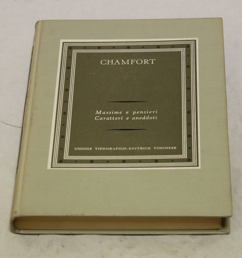 Chamfort Chamfort - Massime e pensieri, Caratteri e aneddoti . Torino, UTET 1957 - terza ristampa italiano, 18 13,5 pp.200 Collana di traduzioni: I grandi scrittori stranieri.