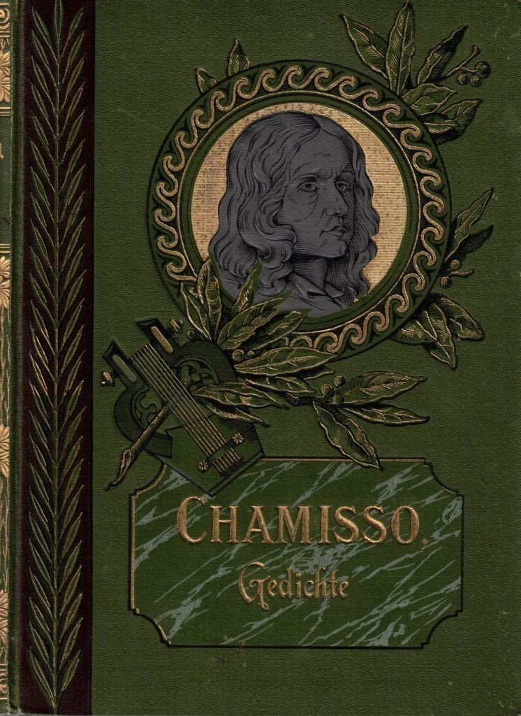 Gedichte von Adelbert von Chamisso. Mit einer einleitung, Verlag der Literaturwerke Minerva, Leipzig s.d., pp. 240 con testo stampato in eleganti caratteri gotici, ill. b.n., testatine e finalini ill. b.n., 1 c. di tavv. f.t. ill. b.n. con ritratto dell’autore al controfrontespizio, cm 25, legatura in tutta tela ed. con titoli e fregi in oro al dorso, titoli e fregi in oro al piatto anteriore, decorazioni a impressione al piatto posteriore e tagli spruzzati. Collana Illustrierte Klassiker Ausgabe. Pubblicazione in lingua tedesca. Minime fioriture, per il resto perfetto.
