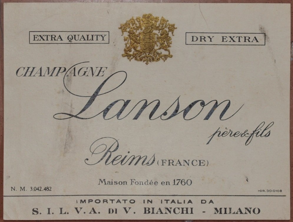 CHAMPAGNE LANSON PERE & FILS REIMS (FRANCE) MAISON FONDEE EN 1760 IMPORTATO IN ITALIA DA S.I.L.V.A. DI V. BIANCHI - MILANO<BR>
