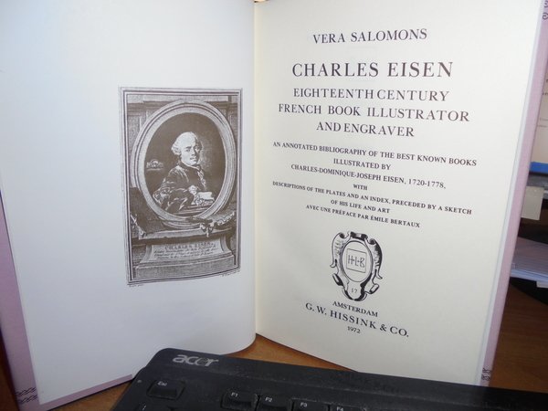 CHARLES EISEN 18th Century French Book Illustrator by VERA SALOMONS. Amsterdam, G.W. Hissink & Co., 1972. In-8° piccolo, tela nera edit. con titoli in oro sul piano e al dorso con sovracopertina. 195 pp. di testo con in fine numerose tavole fuori testo. Come nuovo. Uff. E - V - 4 - 2