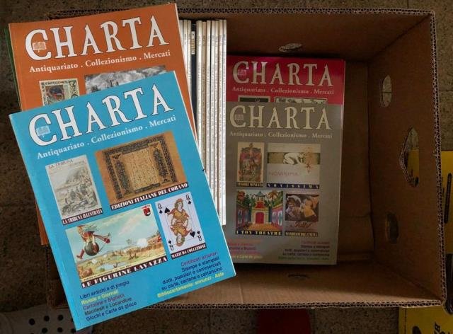 Lotto composto da 25 numeri della rivista Charta, anni 2 - 3 - 4 - 5 non consequenziali. A eccezion fatta di piccoli difetti dei singoli (ad esempio ondulazioni della carta su un numero), buono stato di conservazione dell'insieme. Se interessano numeri singoli si invita a contattarci direttamente.