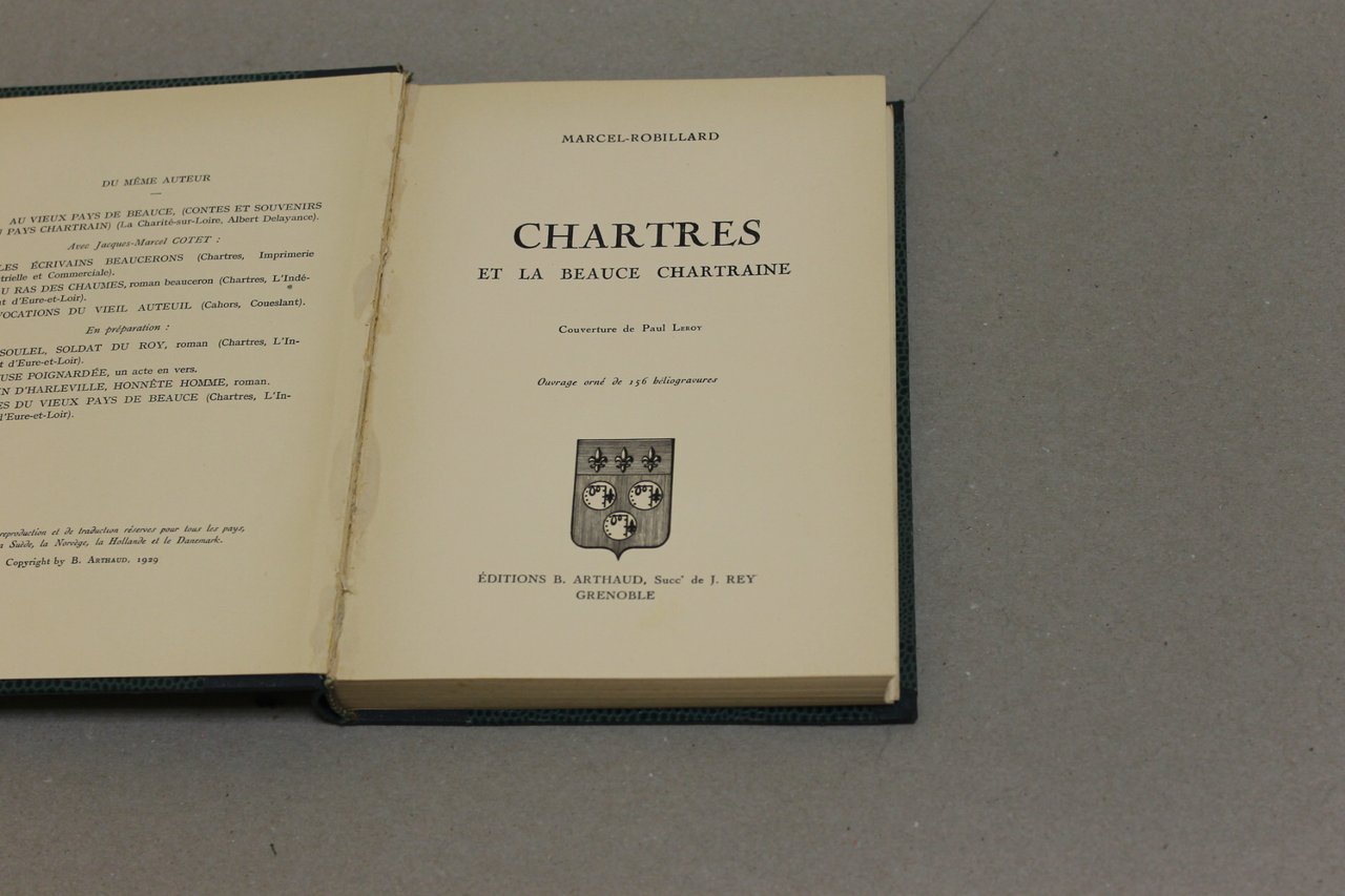 Marcel Robillard Chartres et la beauce chartraine. Grenoble, Editions B. Arthaud 1929 - I french, in ottavo pp.152 Molte immagini in bn, pagine in perfetto stato, copertina un cartonato rivestito in similpelle, dorso in similpelle con scritte in oro.