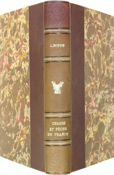 Berger-Levrault et Cie, Editeurs, Paris, Nancy, 1904. Petit In-8 (19 x 12 cm) reliure demi-chagrin marron, dos à nerfs à titres, filets et fer dorés, couvertures (restaurées) conservées, XXII p., 287 pp., 46 figures en noir dans le texte et 5 graphiques en couleur. Ex libris de Vital Pignol. Deuxième édition. Premier partie : La chasse : Le gibier à poil et à plumes. Le droit de chasse. Les modes de chasses (chasse à courre, fauconnerie, la chasse aux pièges et aux filets). L’exploitation de la chasse (répression du braconnage, destruction des animaux nuisibles.). Le calendrier de la chasse. Seconde partie : Les modes de pêche et les engins. La pisciculture artificielle, etc. Thiébaud, 118-19.