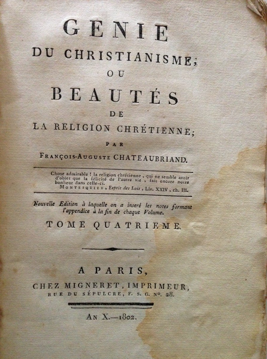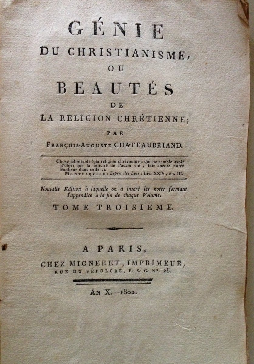 CHATEAUBRIAND LE GENIE DU CHRISTIANISME BEAUTES DE LA RELIGIONE CHRETIENNE 1802