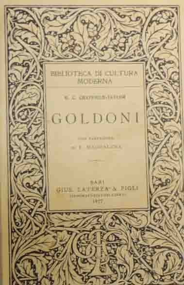 Hobart C. Chatfield-Taylor, Goldoni, con prefazione di Edgardo Maddalena, Gius. Laterza e Figli, Bari 1927, pp. XV, 359, 2 c. di tavv. Ill. b.n., cm 21, br. ed. Collana Biblioteca di cultura moderna, n. 144.