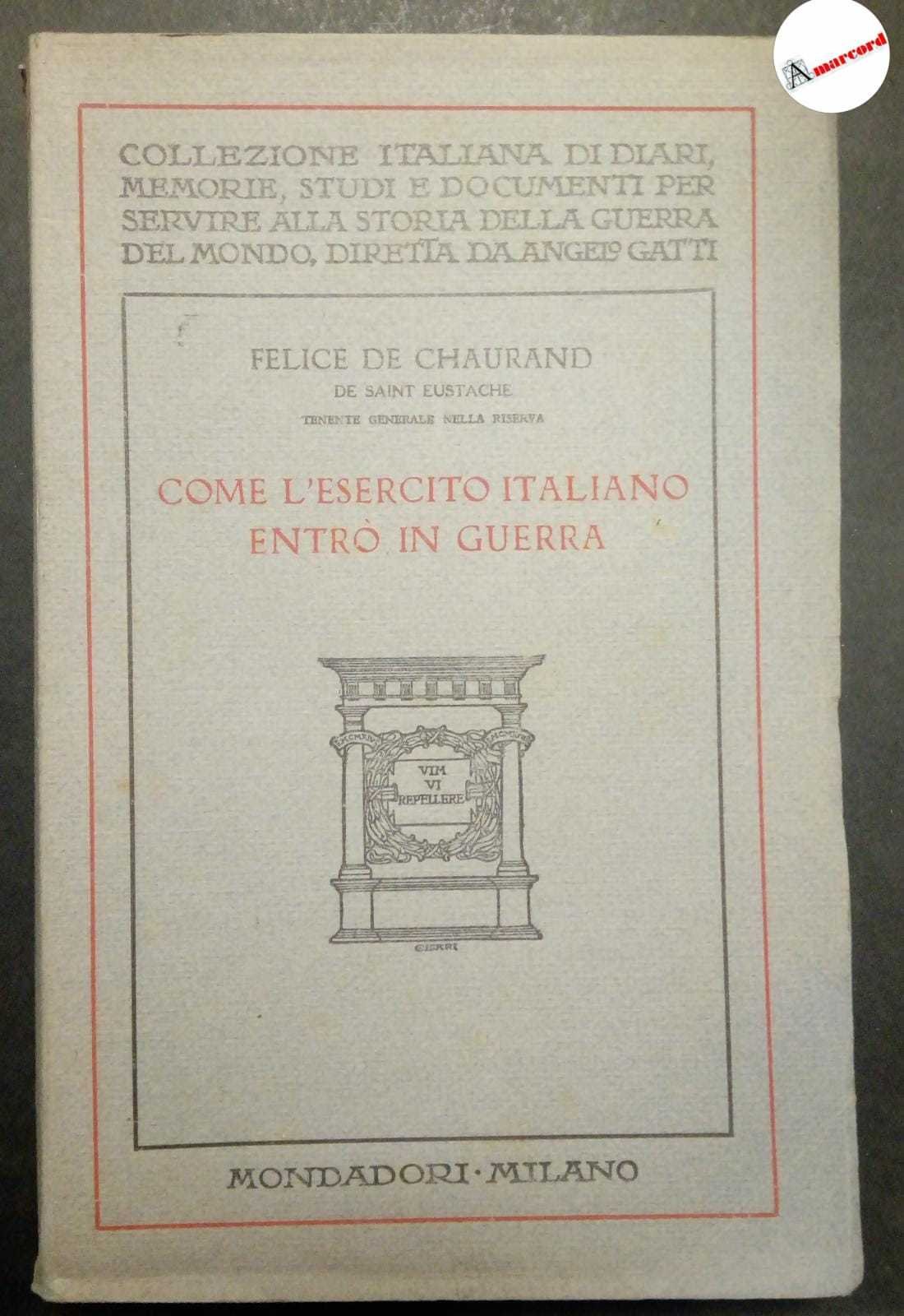 905 Chaurand Felice de Chaurand Felice de, Come l'esercito italiano entrò in guerra, Mondadori, 1929.. Milano, Mondadori 1929 italiano, in ottavo 365 12716
