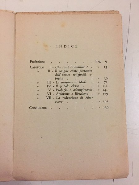 (Collana : Conosci te stesso - n. 7) Di particolare interesse per il periodo in cui lo studio fu affrontato e pubblicato, da parte di un autore che, pur avendo origini ebraiche, tentò di sviluppare una descrizione obiettiva dell'Ebraismo - DETTAGLIO DELLE CONDIZIONI : Segni d'uso in coperta, minuti strappi marginali al dorso e ai piatti della stessa; fioriture sparse - (61e).