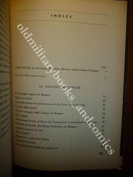 DESCRIZIONE: A cura del Ministero della Cultura Popolare Roma 1941 I^ Ed., br. ed. con sovracc. ill. pp. VIII+142 con 38 ill. b/n f.t. e facsimili in 8°. I misfatti dell'occupazione inglese della Cirenaica nell'inverno 1940-1941. Prefazione di A.Pavolini - Molte foto anche rare e riproduzione di documenti. Indice completo in foto. CONDIZIONI: Ottime/Perfette. PESO / WEIGHT: 369 gr. without package