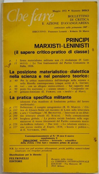 Che fare (Bollettino di critica e azione d'avanguardia) numero 10 1972 – Principi marxisti-lenisti (il sapere critico – pratico di classe)