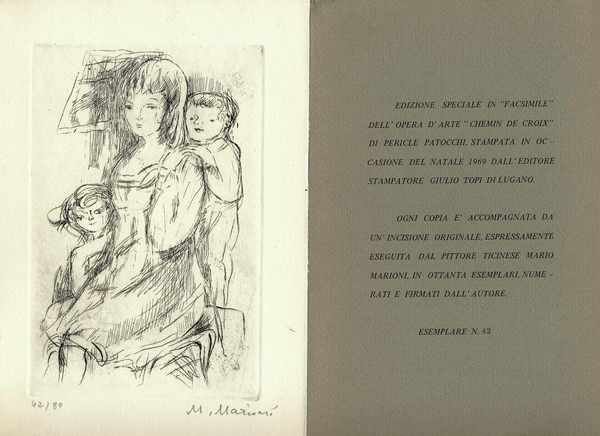 • 16 x 23, 5 con 14 illustrazioni di Marioni e una incisione originale espressamente eseguita dal Pittore Mario Marioni in 80 esemplari, numerati e firmati dall'autore
