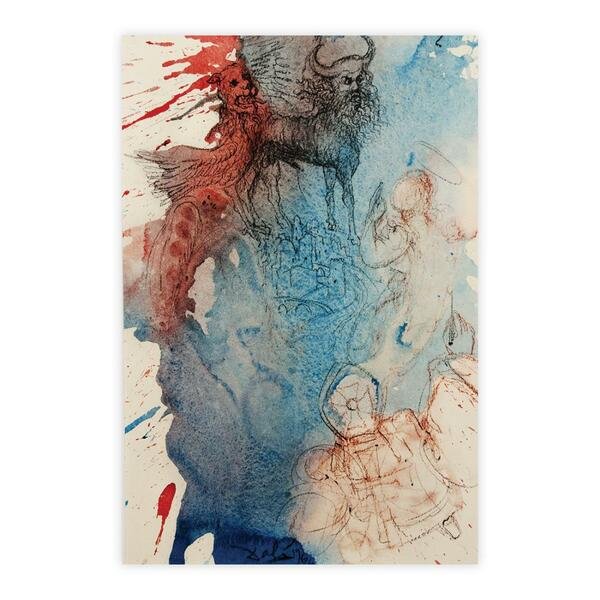 Cherubim expandebant alas super locum Arcæ et protegebant Arcam et vectes eius (III Regum, 8) "Et gloria Domini Israel assumpta est de Cherub quæ erat super eum ad limen domus et vocavit virum qui indutus erat lineis et atramentarium scriptoris habebat in lumbis suis" (Ezechiel, 9) Salvador Dalì (1904-1989)Serilitografia originale a colori firmata in lastraProvenienza: Biblia Sacra Vulgatæ Editionis Rizzoli editoris mediolani Anno Domini M.CM.LXVII (1967)Dimensioni: cm 48,5 x 35Riferimento: Volume II Pagina 88Certificato di autenticità allegato C.OAEdizione disponibile: N. 1095/1499