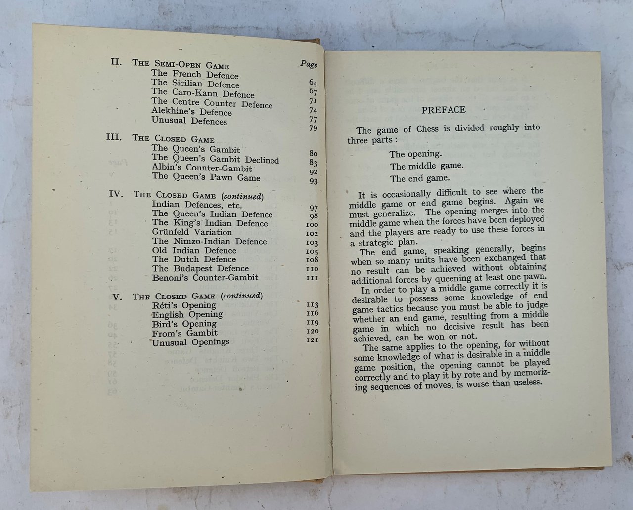 First Edition reprinted 19 times. New Edition revised and rewritten 1951. Testo in inglese. XVI/ vi+122=128/ rilegatura rifinita in carta liscia écru con grafica in nero e arancione. Con figure di scacchiere in nero nel testo. Stato buono (leggera usura della copertina - copertina, fogli di guardia e pagine brunite - con etichetta da catalogazione vuota incollata al primo piatto).