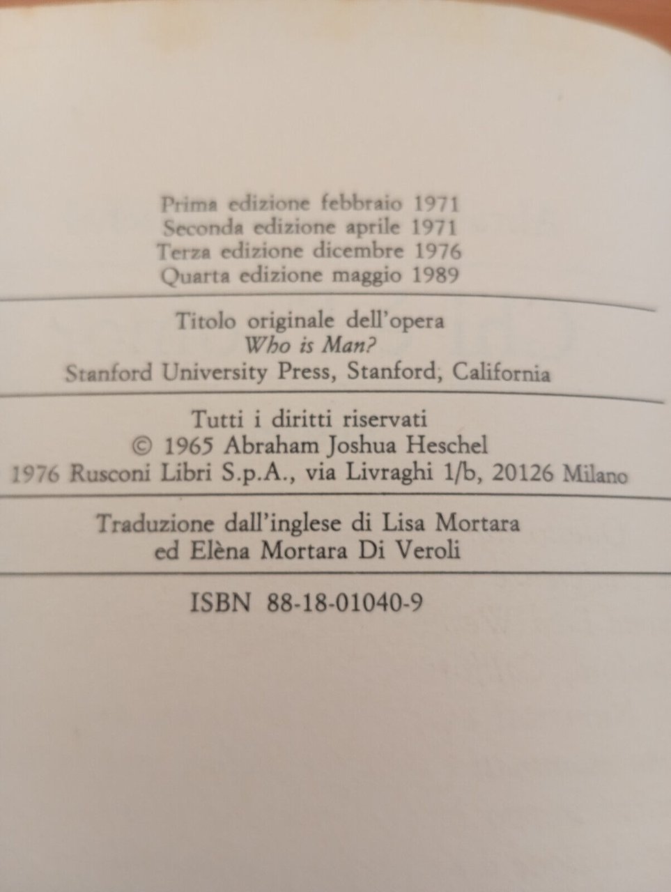 Chi è l'uomo?, Abraham Joshua Heschel, Rusconi, 1989