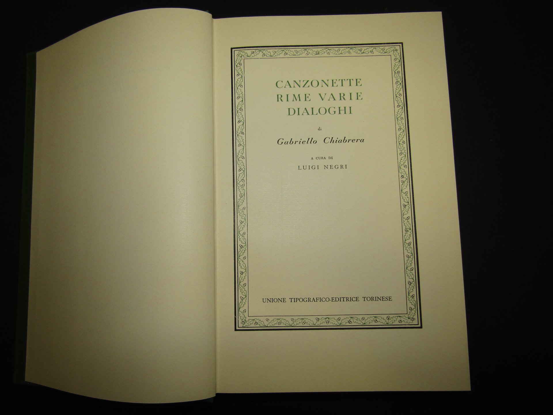 Chiabrera Gabriello. Canzonette rime varie dialoghi. a cura di Luigi Negri. UTET. 1968