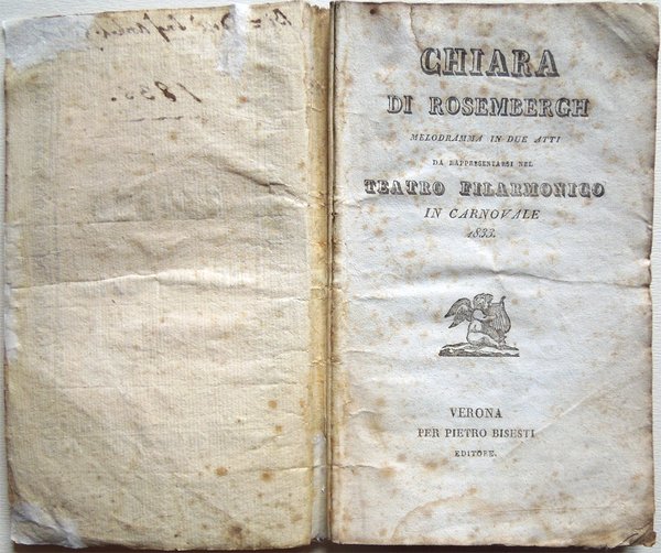 Chiara di Rosembergh, melodramma in due atti da rappresentarsi nel Teatro Filarmonico in Carnovale 1833