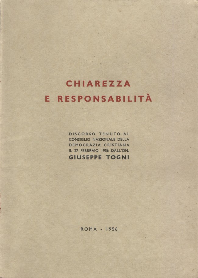 Chiarezza e responsabilità. Discorso tenuto al Consiglio Nazionale della Democrazia Cristiana il 10 febbraio 1956