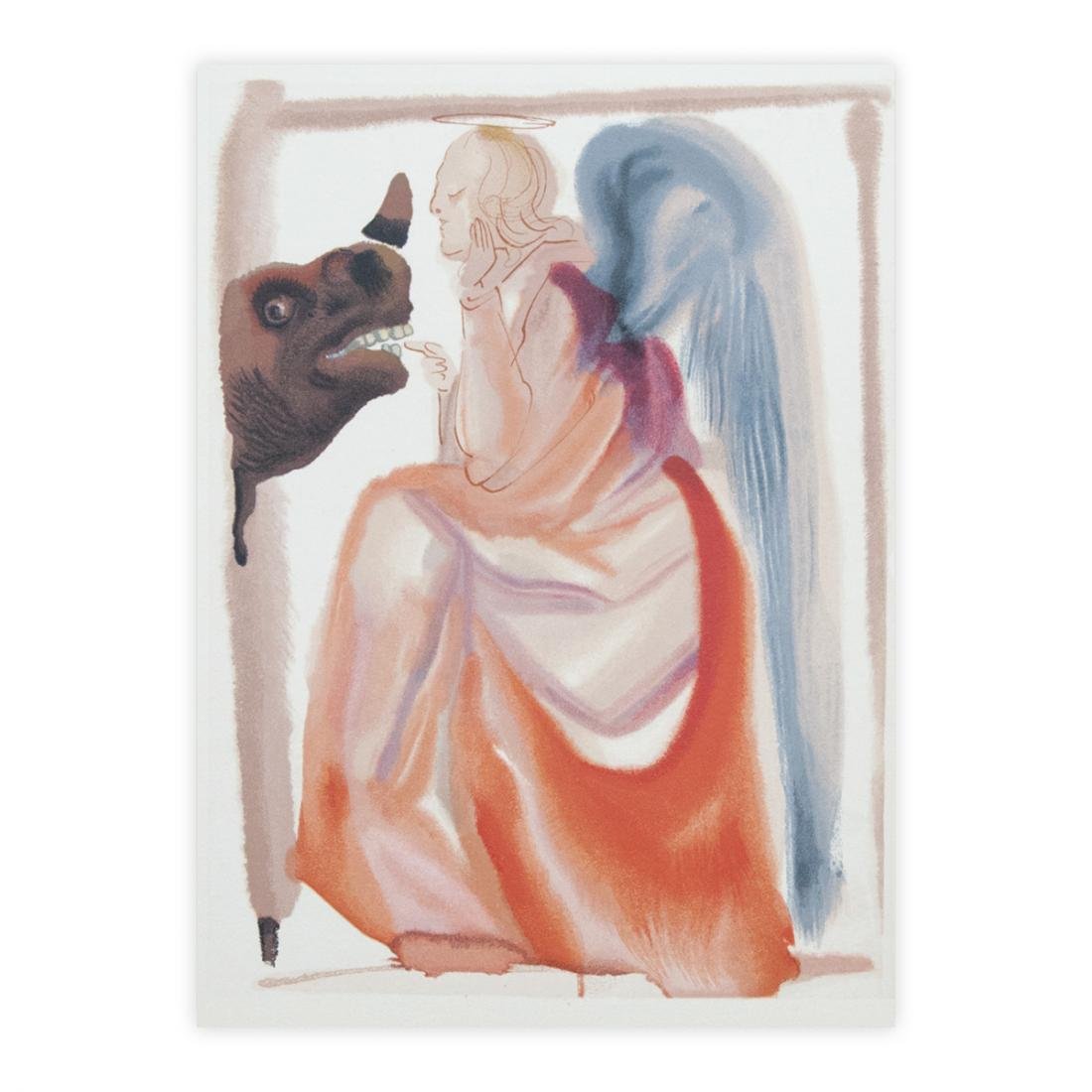 E quando il dente longobardo morseLa Santa Chiesa, sotto le sue aliCarlo Magno, vincendo, la soccorse. (CANTO VI) Salvador Dalì La Divina Commedia - ParadisoDimensioni folio cm 33 x 26Supporto: Xilografia Originale - 1960Provenienza: La Divine comédie, Edizioni D'Art Les Heures claire rue Bonaparte 19 Parigi 1959-1963La tavola in vendita è completa di passepartout pronta per essere incorniciata, è in perfette condizioni generali.Certificato di Autenticità (C.O.A.) allegato