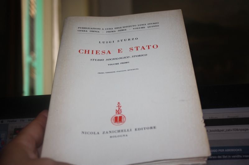 CHIESA E STATO LUIGI STURZO VOLUME 1° 1958 ZANICHELLI