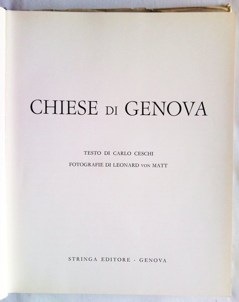 Un volume, cm 26,5 x 33,5; pp. 265, 168 tavv. bn. e a col. nt.; legatura in tela editoriale con titoli e impressioni in oro alla coperta, sovracoperta policroma. Prima edizione; opera a cura della Cassa di Risparmio di Genova. Rif.: IT\ICCU\SBL\0077112. Cond.: Tracce d'uso alla sovracoperta. Opera in buone condizioni generali.