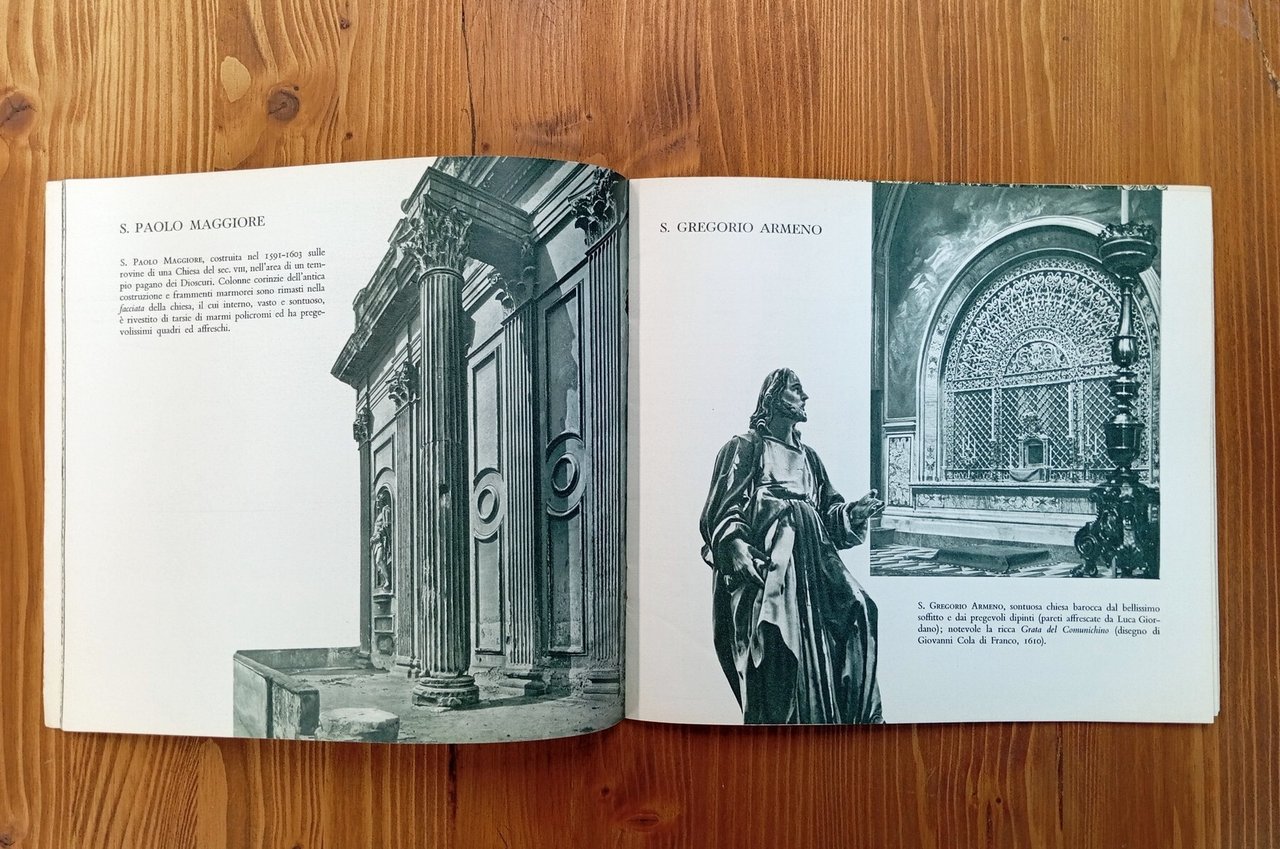 Edizione a cura dell'Ente Provinciale per il Turismo e dell'Azienda Autonoma di Soggiorno, Cura e Turismo di Napoli - Brossura originale rilegata a punto metallico, 40 pagine riccamente illustrate da riproduzioni fotografiche in bianco e nero; cartina della città alla sguardia anteriore, elenco delle chiese a quella posteriore. Esemplare in ottime condizioni.