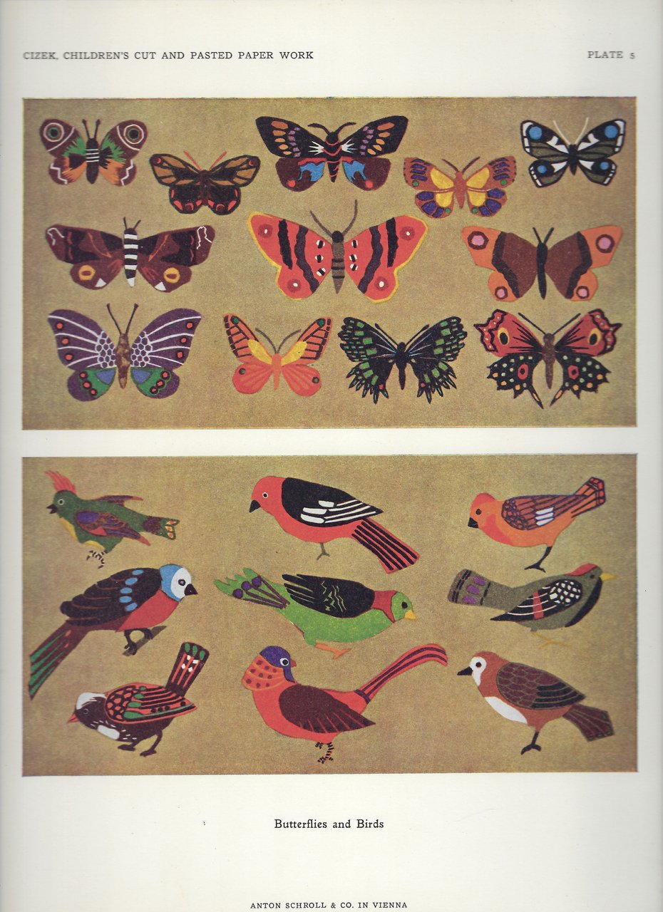 Parte delle illustrazioni n.t. sono il risultato di esercizi svolti presso i Corsi dei Giovani del Kunst-Gewerbeschule di Vienna; il testo include commenti di Cizek su ciascuna delle figure presenti nel testo.