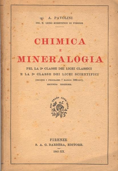 BARBERA G, 1942. Per la 2^ classe dei licei classici e per la 3^ classe dei licei scientifici dell'epoca (secondo i programmi del 7 maggio 1936). Opera con numerosi disegni n.t. e alcune immagini b.n. n.t. Pagine 264. BUONO stato, leggere sottolineature a lapis.