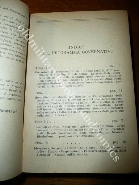 CHIMICA GENERALE PER GLI ISTITUTI TECNICI ALESSANDRI 1919 I^ Ed. BELLO