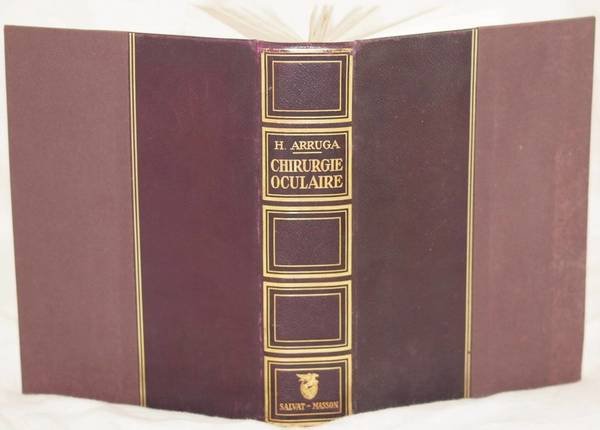 In 4. Dim. 27,5x19,5 cm. Pp. XXXII+965. Edizione del 1953 di questo imponente trattato di chirurgia oculare scritto da Hermenegilda Arruga. Traduzione dalla terza edizione spagnola a cura di John D. Blum. Testo francese All'inizio ampia parte dedicata alla descrizione della sala operatoria, il personale, strumenti, accessori, sterilizzazione, anestesia, preparazione all'intervento. Segue chirurgia delle varie parti dell'occhio con le varie tecniche. Il testo è illustrato da 1293 figure delle quali 127 a colori. In buone condizioni. Copertina in mezza pelle editoriale con titolo in oro al dorso in ottime condizioni generali con lievi usure ai margini e dorso. Legatura in buone condizioni. All'interno le pagine si presentano in ottime condizioni con rare fioriture. Edition of 1953 of this imponent treaty of eye surgery written by Hermenegilda Arruga. Translation from the third spanish edition by John D. Blum. French text At the beginning wide description of surgery room, people, instruments, accessories, sterilization, anaestesia, preparation to intervention Then surgery of different parts of the eye with description of different techniques. The text is enriched by 1293 figures of which 127 are coloured In good conditions Half leather editorial cover with golden title in the spine in very good general conditions slightly worn in the edges and spine. Binding in good conditions. Inside pages are in very good conditions with occasional foxings.<BR><BR>