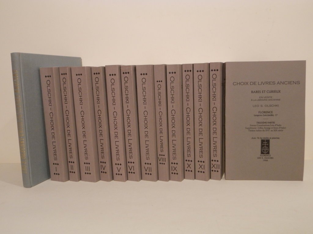 In-8°, cm 22, 13 volumi (più 1 di indice), rilegati in brossura editoriale con titoli al piatto. Ristampa anastatica dichiarata in 150 esemplari su licenza dell'editore Olschki. Quest'impresa bibliografica fu edita e composta da Leo Olschki a partire dal 1907 e terminata nel 1966. L'opera descrive oltre 20000 libri divisi per materie, tranne il primo volume che elenca oltre duemila incunaboli! Tutte le voci riportano i prezzi di listino e ogni volume è arricchito da numerose illustrazioni. Proponiamo insieme al set completo anche il fondamentale volume di indice alfabetico per autore venne pubblicato solo negli anni '70 dalla Libreria Garisenda degli anni '70. Qualche fascicolo del primo volume lievemente allentato, peraltro esemplare in ottimo stato di conservazione. Opera monumentale e leggendaria, 13 volumi più 1 di indice. . *** TUTTI I NOSTRI LIBRI SONO VISIBILI PREVIO CONTATTO MAIL O TELEFONO NELLA NUOVA SEDE DI MILANO: LIBRERIA COSMOPOLIS, VIA JOMMELLI, 22. ***