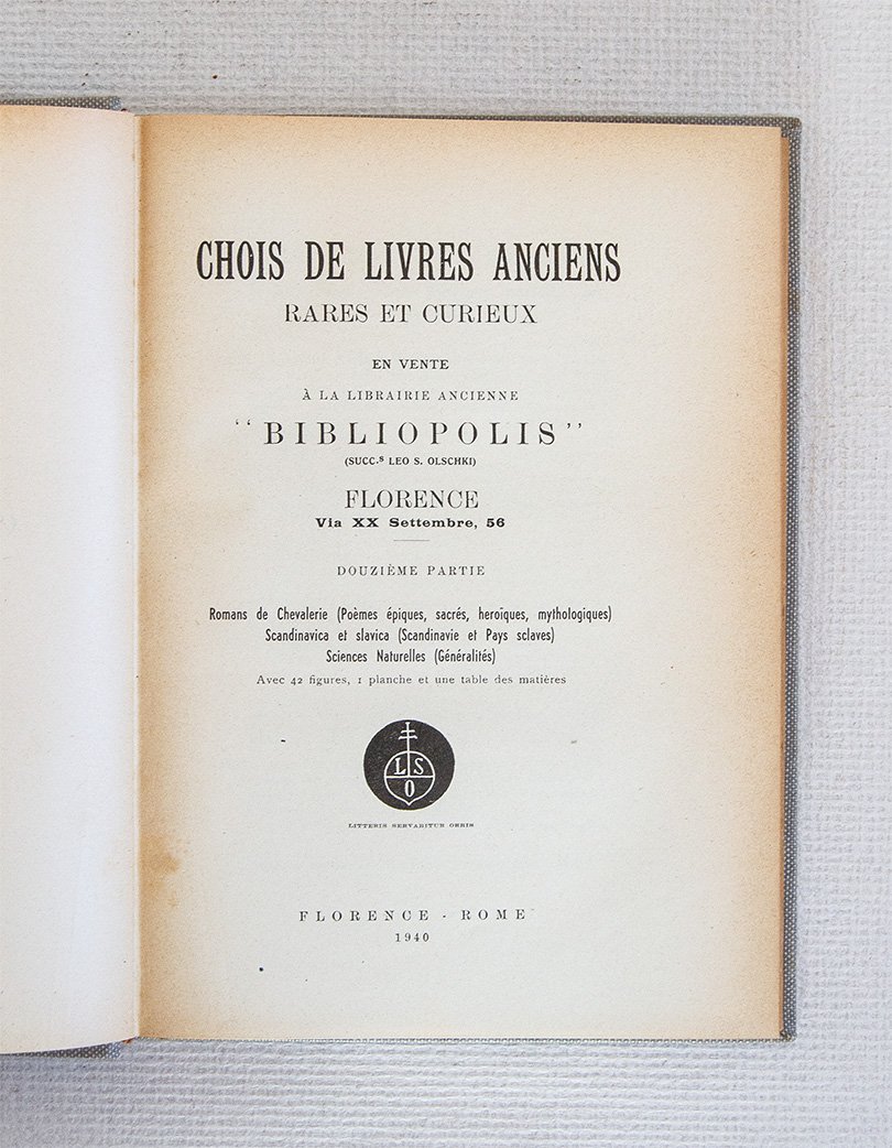 Choix de livres anciens rares et curieux en vente à la Librairie Ancienne Leo S. Olschki Florence. Douzième partie. Romans de Chevalerie, Scandinavica et Slavica, Sciences Naturelles.