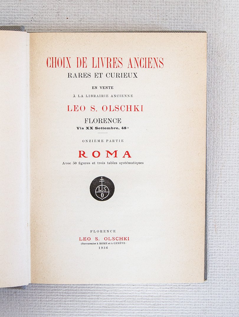 Choix de livres anciens rares et curieux en vente à la Librairie Ancienne Leo S. Olschki Florence. Onzième partie. Roma.