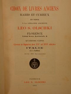 CHOIX DE LIVRES ANCIENS rares et curieux. Quatrième partie. Livres à figures des XV° et XVI° siècles. ITALIE (A à Lullus). Avec 365 fac-similès.