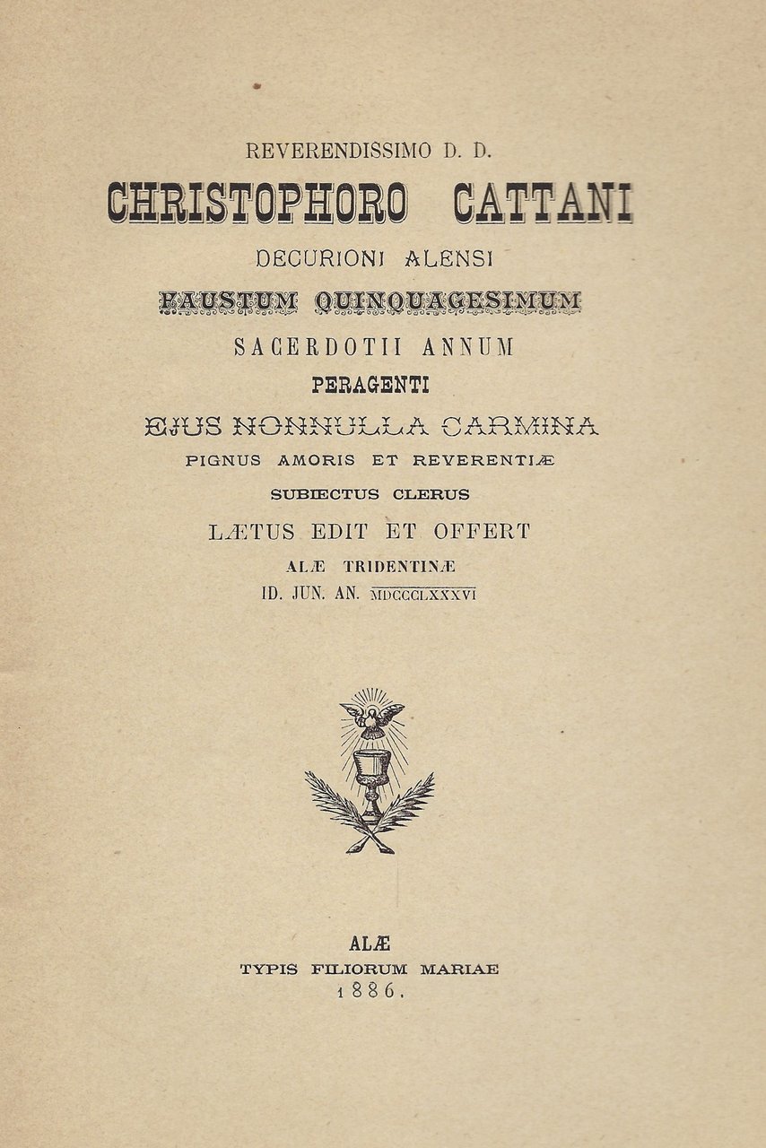 Raccolta di versi in latino in onore del 50°anno di sacerdozio di C. Cattani.