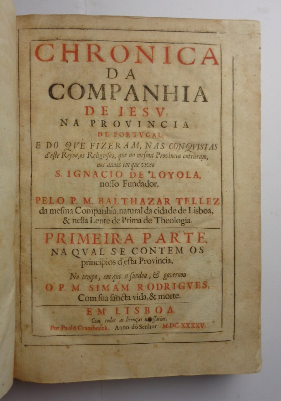 CHRONICA DA COMPANHIA DE IESU NA PROVINCIA DE PORTUGAL, e do que fizeram, nas conquistas d'este reyno, os religiosos, que na mesma provincia entraram, nos annos em que viveo S. Ignacio de Loyola, nosso fundador.