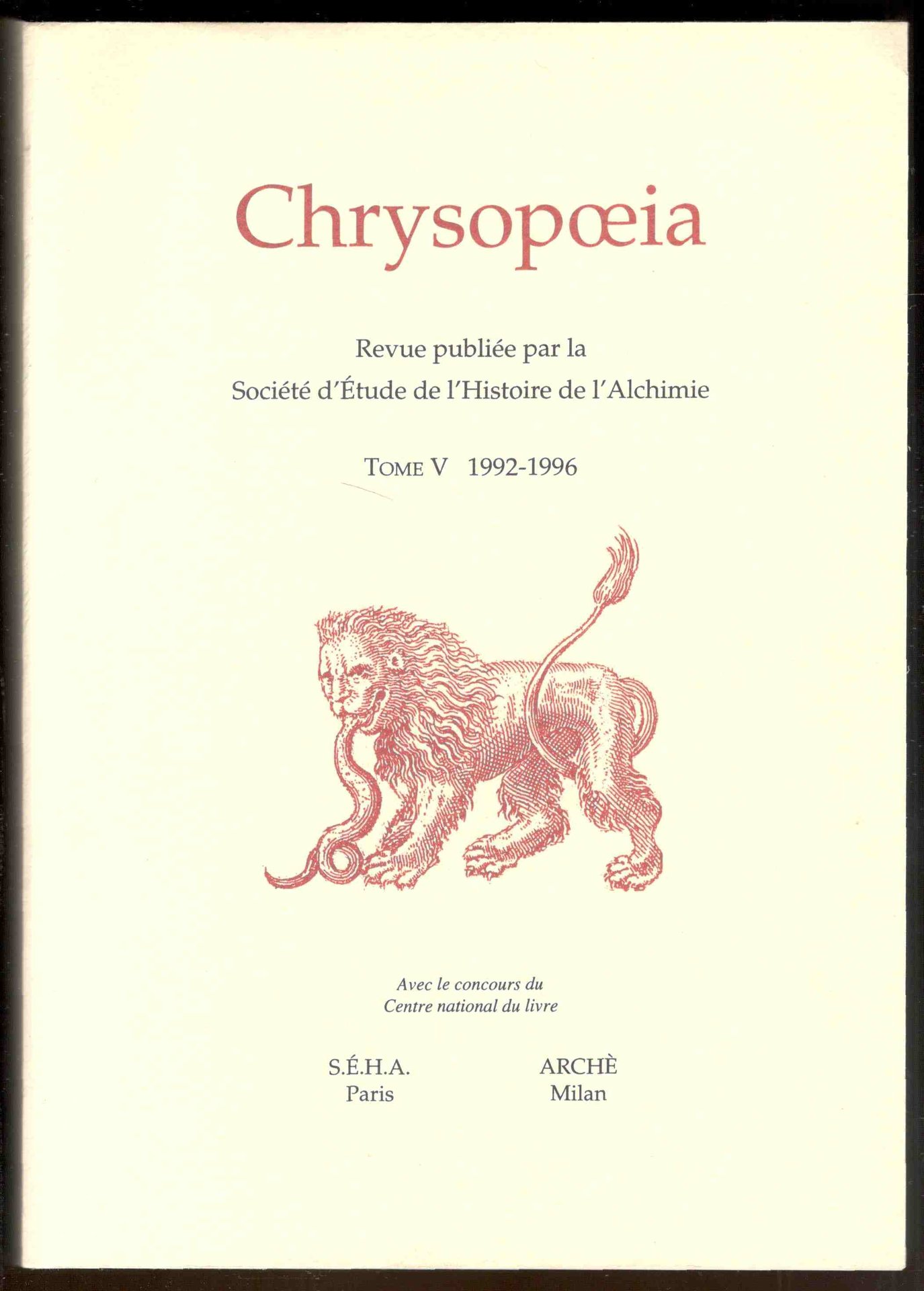 Chrysopoeia. Revue publiée par la Société d'Etude de l'Histoire de l'Alchimie. Tome V 1992-1996
