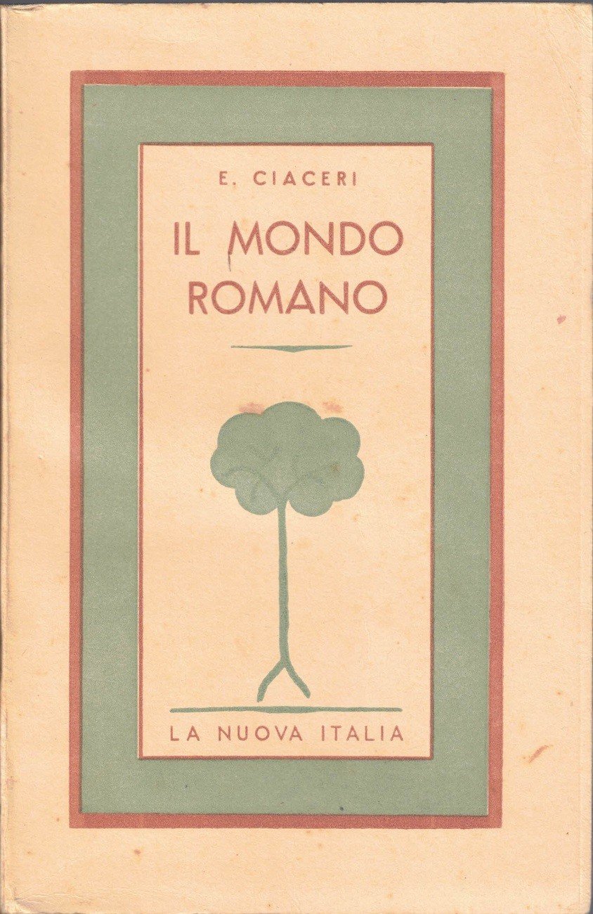 E. (Emanuele) Ciaceri, Il mondo romano, La Nuova Italia, Firenze 1941, terza ed., pp. VI, 110, cm 20, br. ed. Collana Biblioteca del popolo, vol. 2. Nome dell’autore manoscritto al dorso. Minime fioriture, leggera brunitura della carta, per il resto buon esemplare.