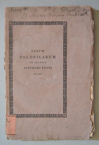 *CIAMPI SEBASTIANO. Rerum polonicarum ab exceesu Stephani Regis ad Maximiliani Austriaci Captivitatem liber singularis in lucem editus cum additamentis ab Sebastiano Ciampi in Italia ab negotiis literariis pro Regno Poloniae. Scritti pubblicati da Sebastiano Ciampi riguardanti la Storia di Polonia.