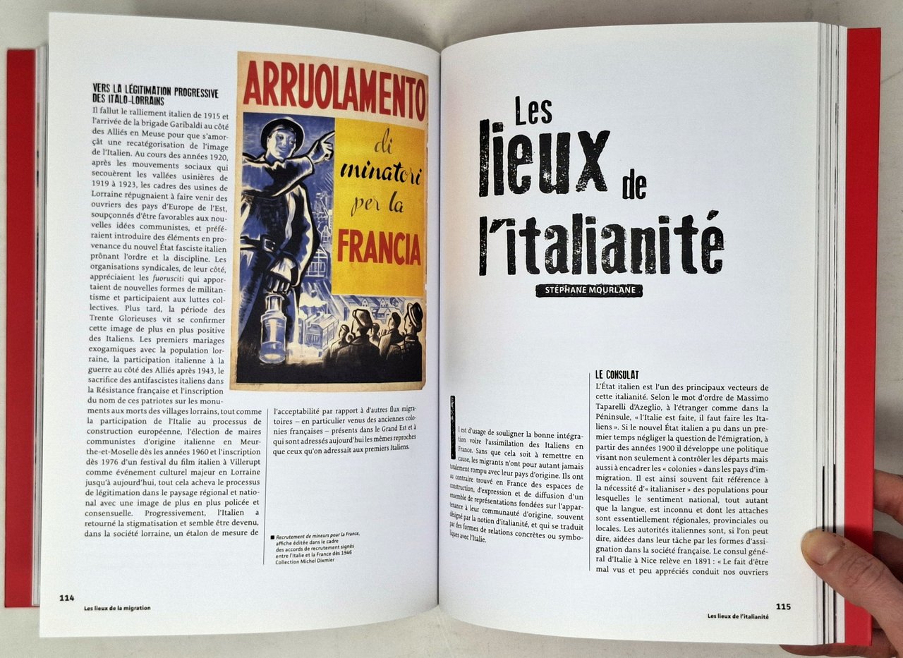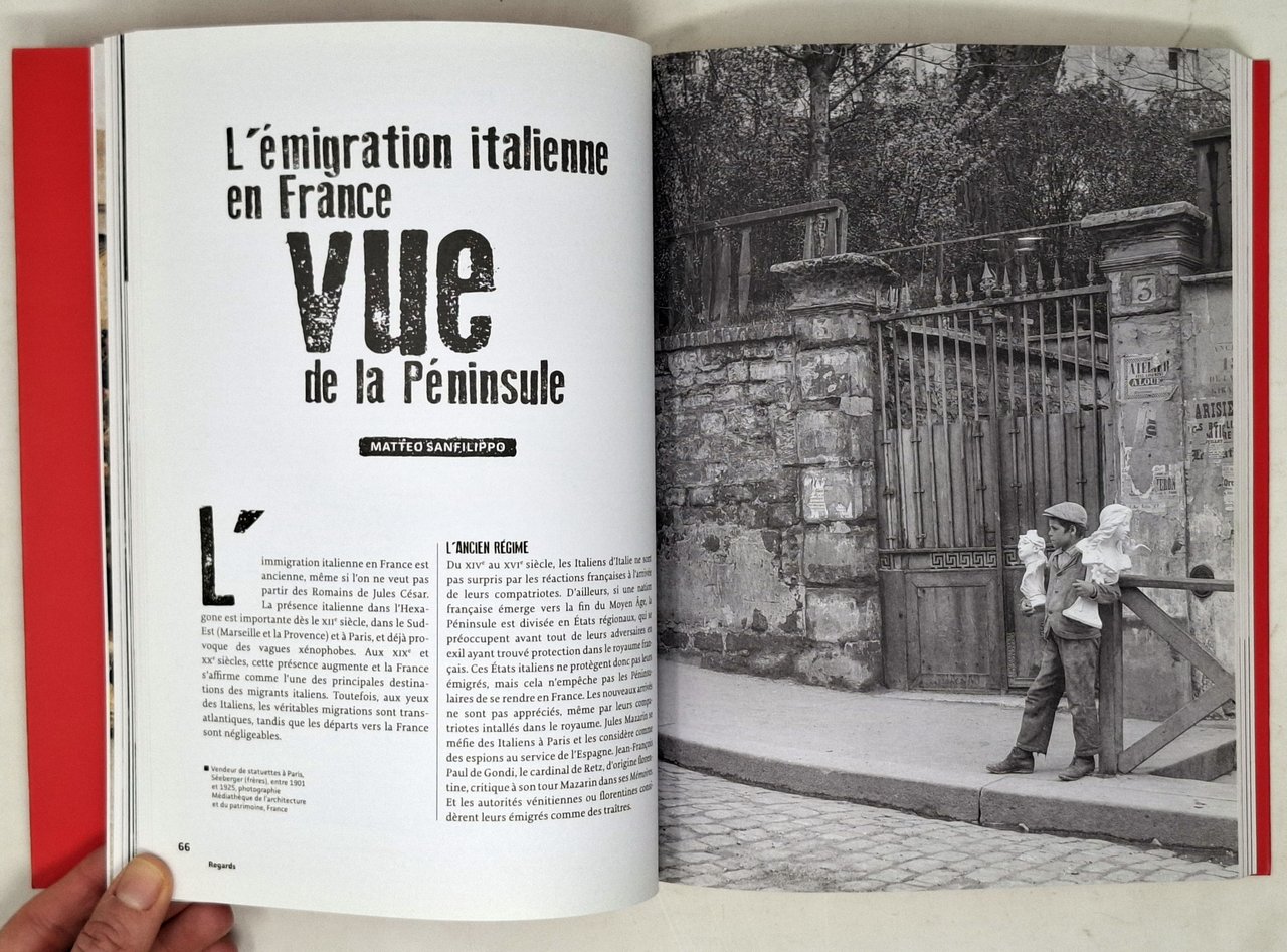 Catalogo pubblicato in occasione dell'esposizione 'CIAO ITALIA! Un siècle d'immigration et de culture italiennes en France (1860-1960)' Musée national de l'histoire de l'immigration. In lingua francese. Pagine: 192. Formato: 19,5 x 26 cm circa. Ottimo esemplare. Copertina editoriale flessibile con ampie alette. Molto ricco l'apparato iconografico, composto da illustrazioni in nero e a colori nel testo.