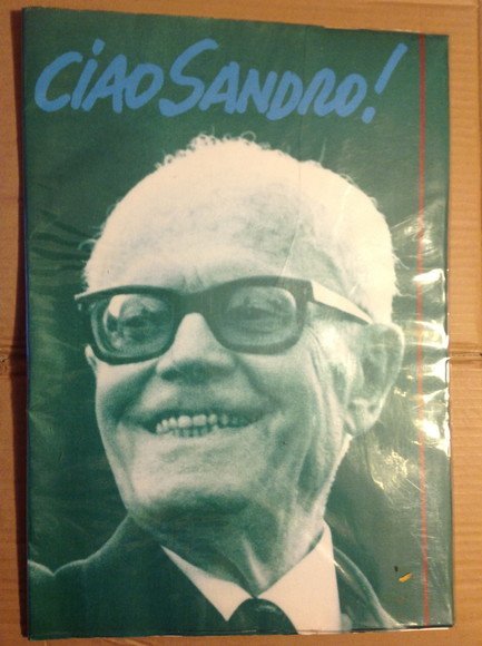 Formato 34,5X49. Cartella contenente fotografie commemorative del Presidente della Repubblica Pertini<br/>Legatura brossura con sovracoperta in acetato<br/>Illustrazioni 14 tavole in b/n e a colori<br/>Prima Edizione