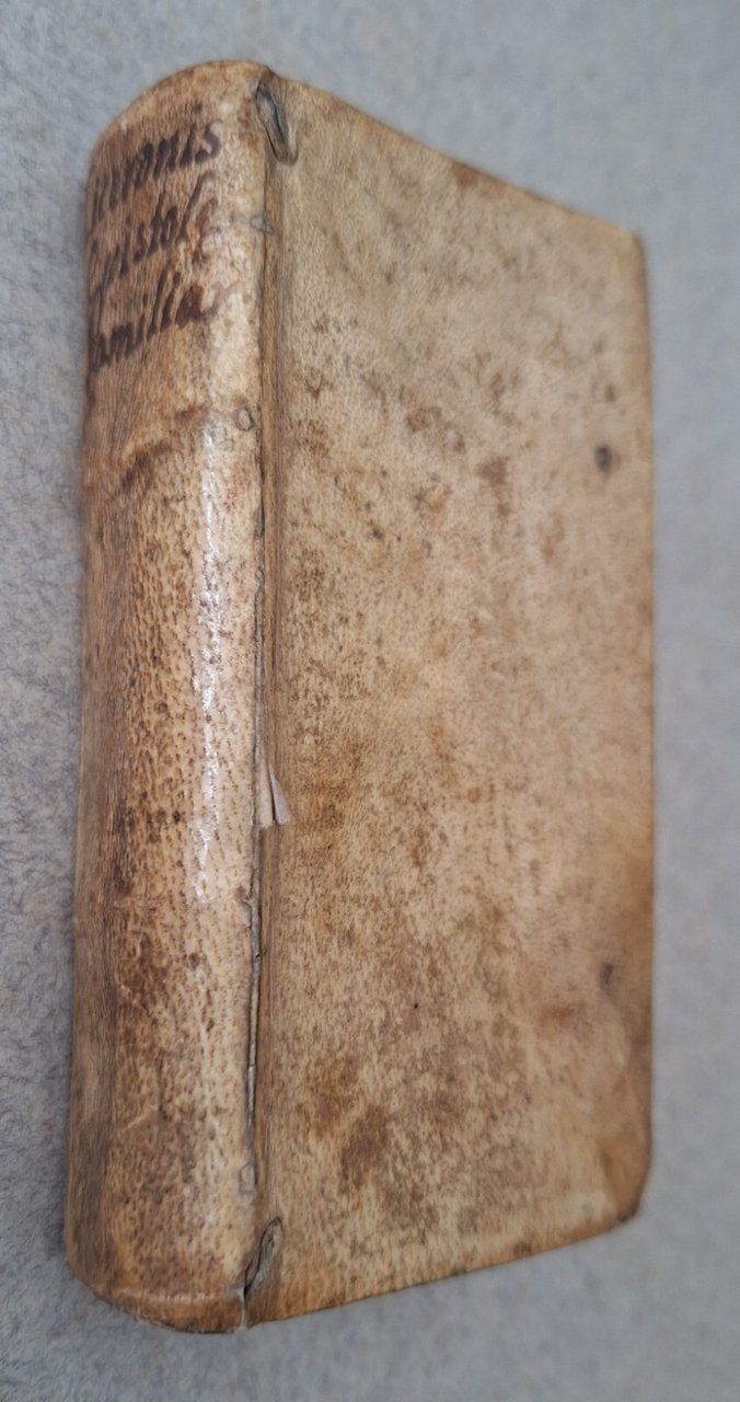 Cm. 6 x 11,5, legatura in piena pergamena con titolo ad inchiostro al dorso, vignetta al frontespizio. 8 pagine manoscritte legate al fondo.Lievi segni alla legatura. Lievissima rifilatura del margine superiore, pagine sostanzialmente fresche e pulite.