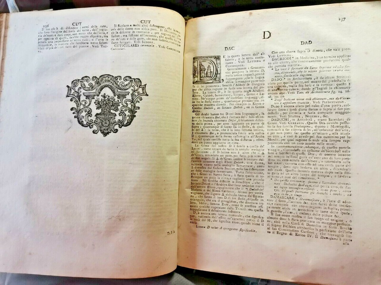 CICLOPEDIA DIZIONARIO UNIVERSALE DELLE ARTI E SCIENZE 1747 9 volumi antico libro