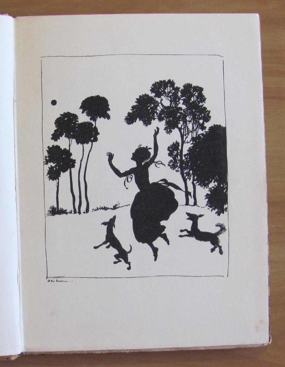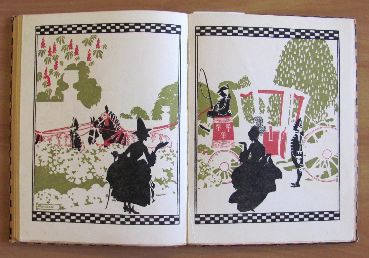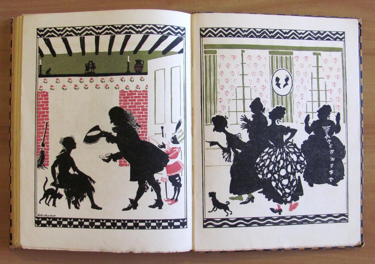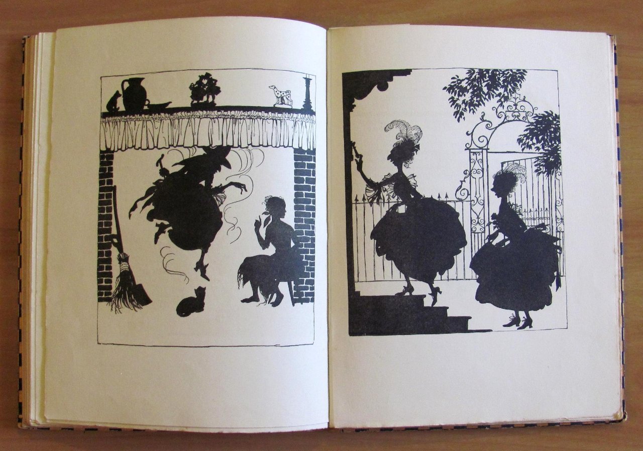 Belle copertine in tricromia, 1 splendida tavola a colori applicata in antiporta, protetta da velina, molte silhouette in nero n.t., di cui 14 a piena pagina, e 3 illustrazioni a colori a doppia pagina di Arthur Rackham. Ed. William Heinemann - London, I edizione 1919. Cartonato editoriale con dorso in tela originale. Lieve spellatura della carta e macchiolina al piatto, peraltro splendido esemplare.  19,5x26; pp.110. Raro e in Ottimo stato. , Molto buono (Very Good)